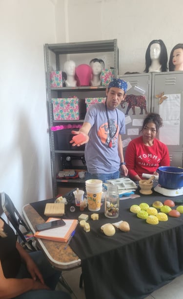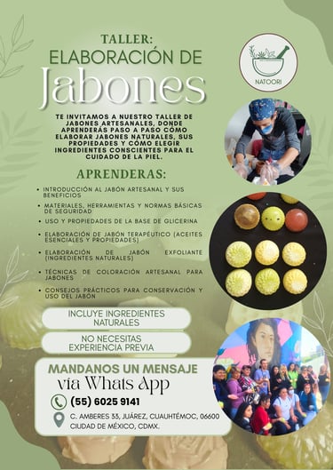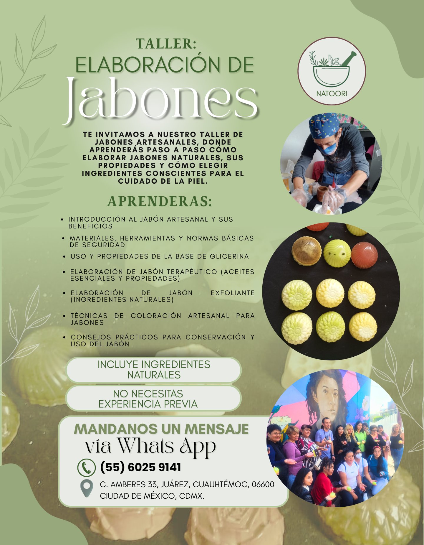 🧴 Incluye materiales: Taller, elaboración de jabones artesanales base de glicerina, jabón básico, terapeutico, exfoliante y jabón con tecnica de coloración